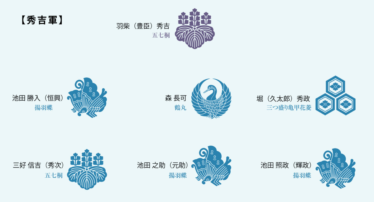 のちに天下統一をした稀代の名将。小牧・長久手合戦では自ら軍を率い、巧みな采配で徳川勢を翻弄し、後の政権樹立への基盤を築いた。